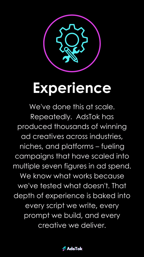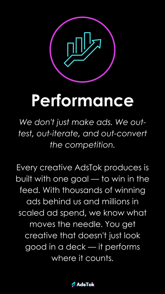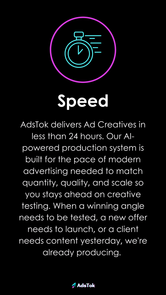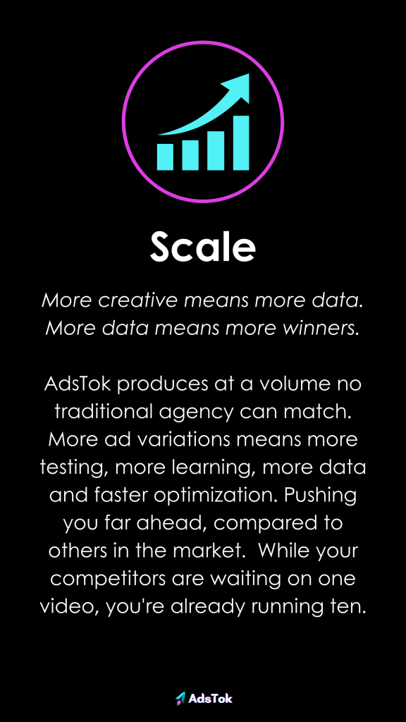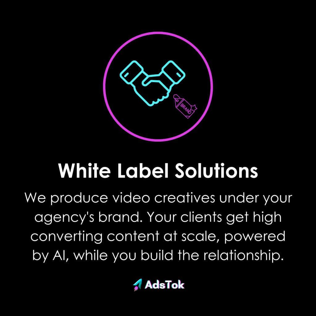 Whether you need content for your own agency brand or a white-label production partner for your clients, AdsTok plugs directly into your operation and powers greater results at a fraction of traditional video ad production costs.